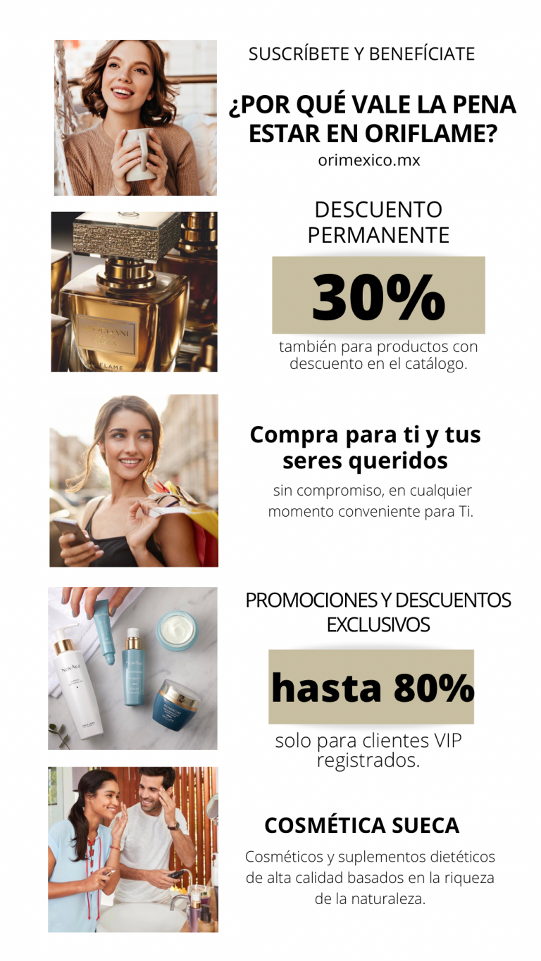 Enamórate de los productos ORIFLAME. Aquí encontrará todo lo que usted y toda su familia necesitan.Gracias a las fragancias y productos de maquillaje, te sentirás